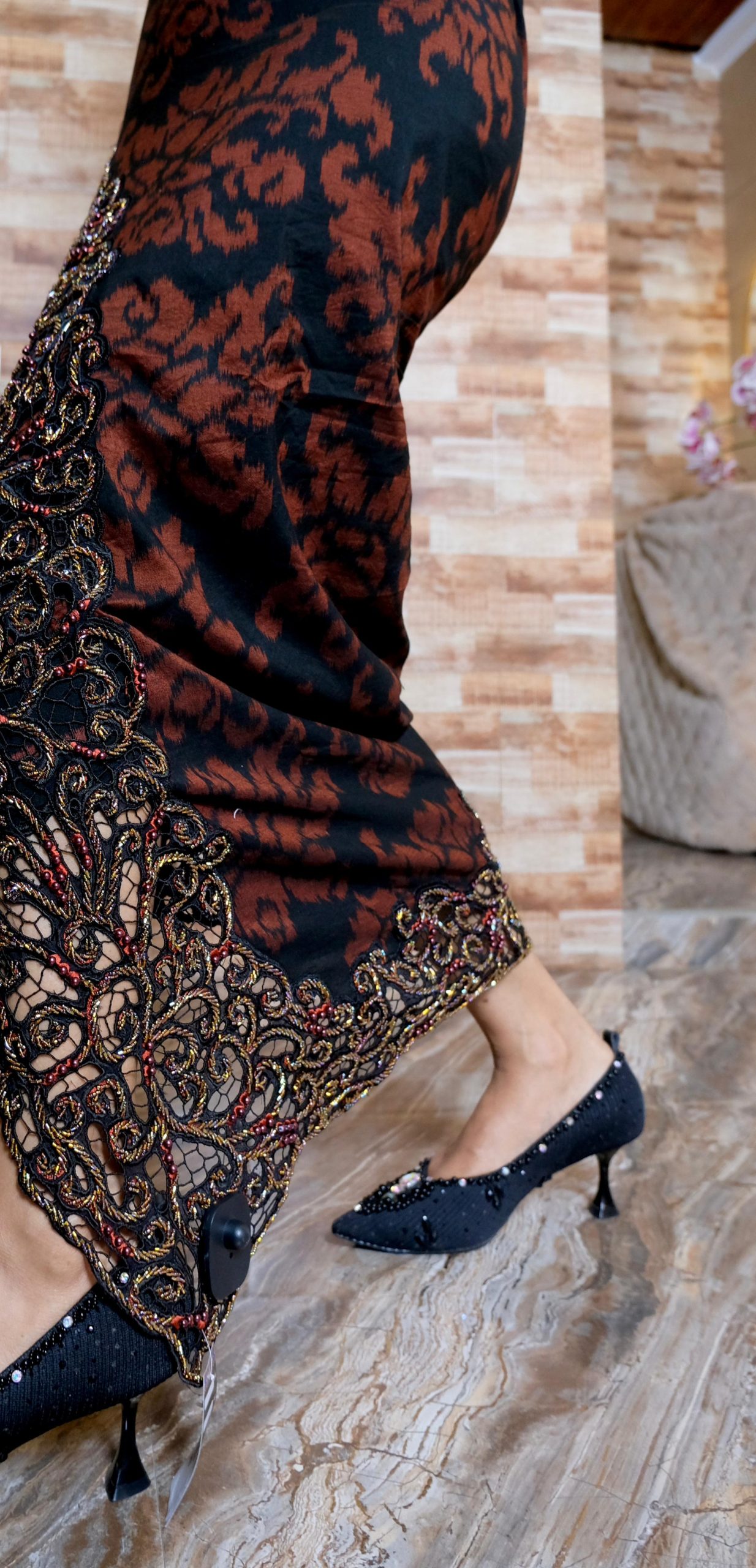 Kamen Saroong Made by Tenun Ikat (Handwooven) Endek Bali with Luxury Handembroidery